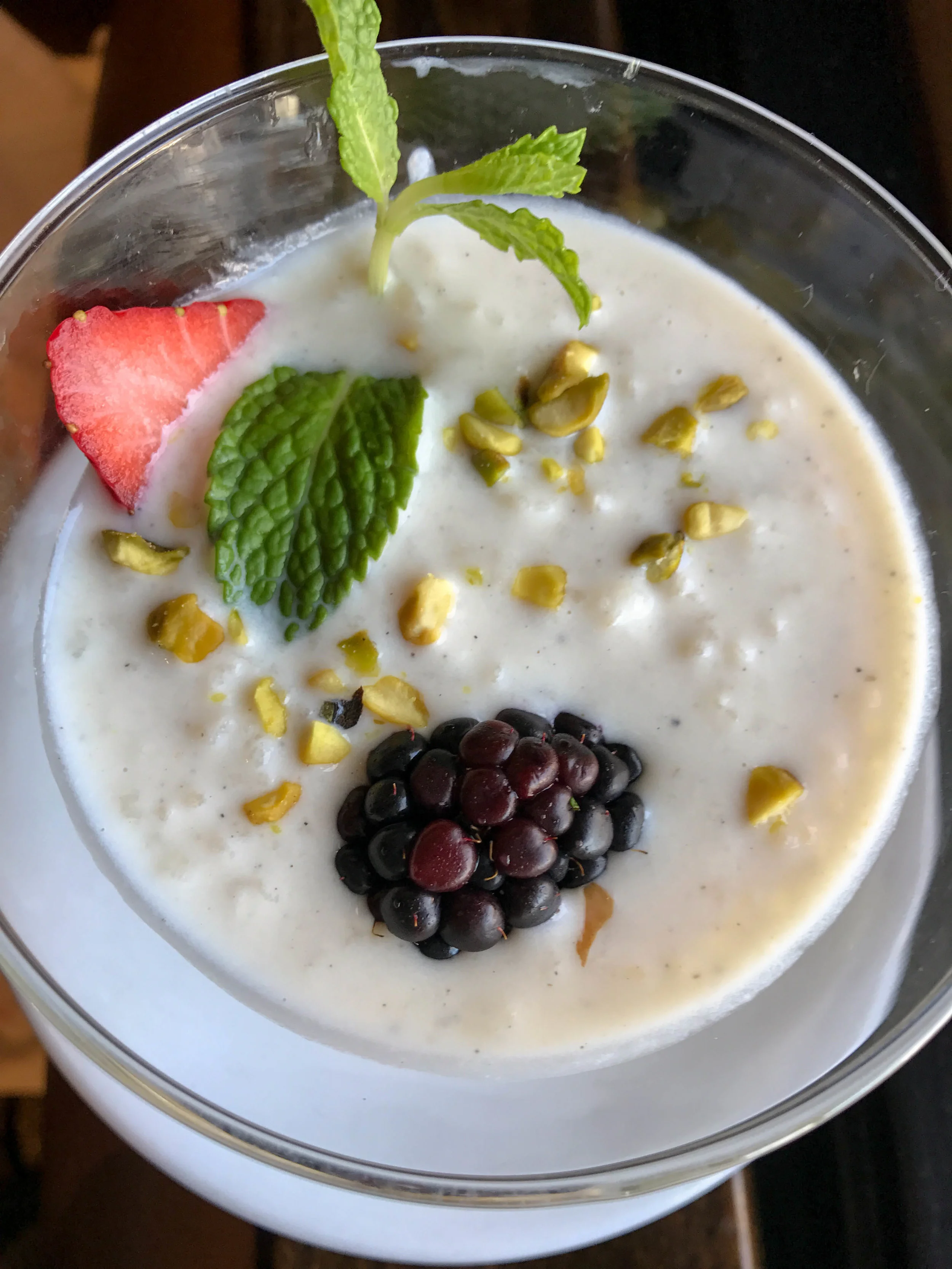 I liked both desserts, but the Elaichi Kheer was a little better just because I had eaten all of this hot/spicy food! This is a creamy rice dessert flavored with cardamom, and there's pistachio sprinkled on top. It was kind of like a rice pudding?
